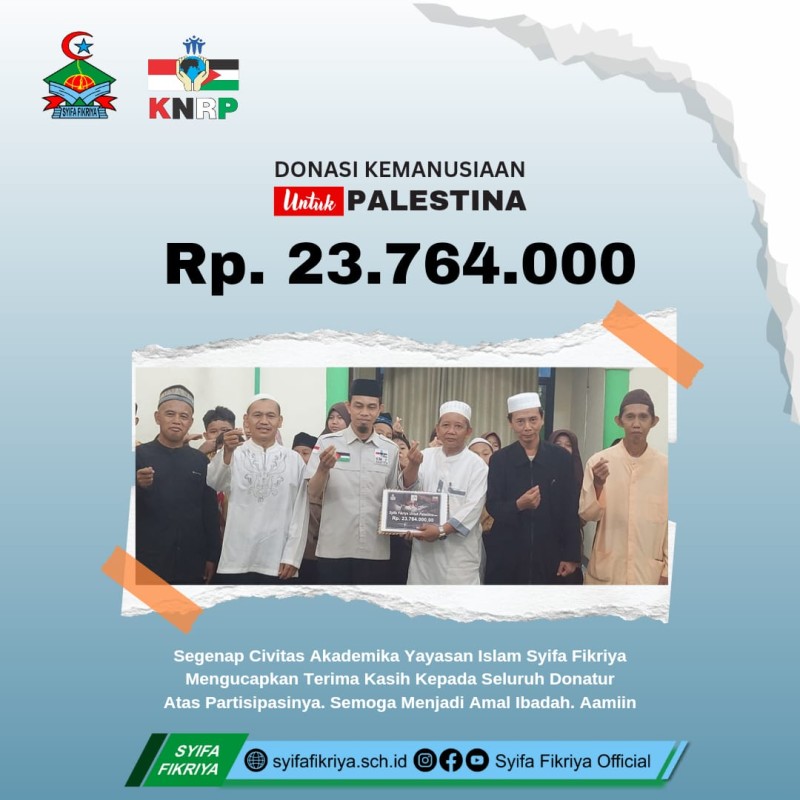 Menurut Direktur Yayasan Islam Syifa Fikriya Bpk H. Marsudi Firdausi kita adalah saudara sedarah, apabila warga palestina merasakan penderitaan maka kita juga merasakan hal yang sama. Sebagai bentuk dukungan, semua siswa SIT Syifa Fikriya melakukan aksi solidaritas Palestina. Hanya dua pekan, semua siswa di lingkungan SIT Syifa Fikriya berhasil menghimpun dana hingga